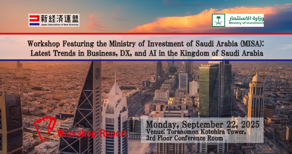 - The Japan Association of New Economy (JANE) organized a workshop featuring the Ministry of Investment of Saudi Arabia (MISA) titled "Latest Trends in Business, DX, and AI in the Kingdom."