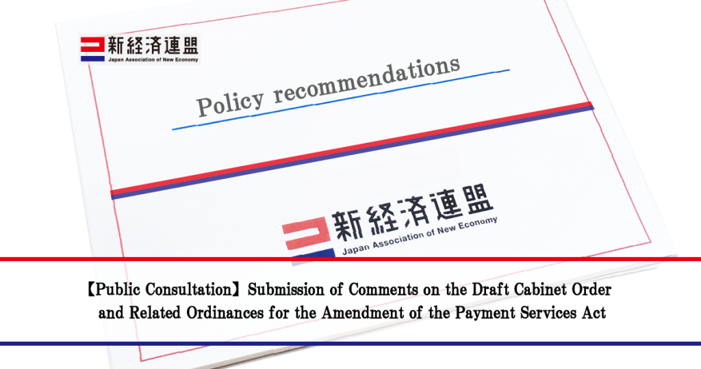 On January 19, 2026, the Japan Association of New Economy submitted comments in response to the public consultation by the Financial Services Agency regarding the Draft Cabinet Order and Related Ordinances for the Amendment of the Payment Services Act.