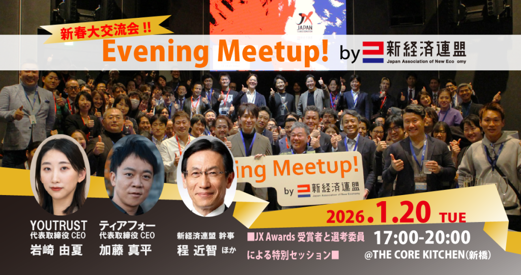 - イベント名:【新春大交流会!!】Evening Meetup! by 新経連 年始スペシャル!