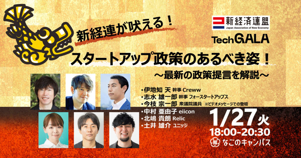 - イベント名:新経連が吠える! スタートアップ政策のあるべき姿! ~最新の政策提言を解説~