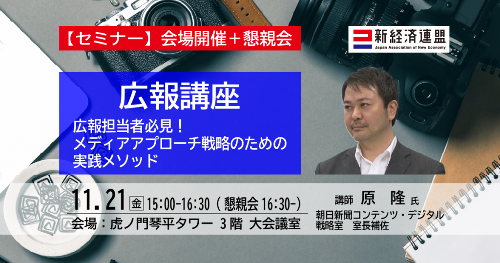 【会場開催+懇親会】広報講座「広報担当者必見! メディアアプローチ戦略のための実践メソッド」
