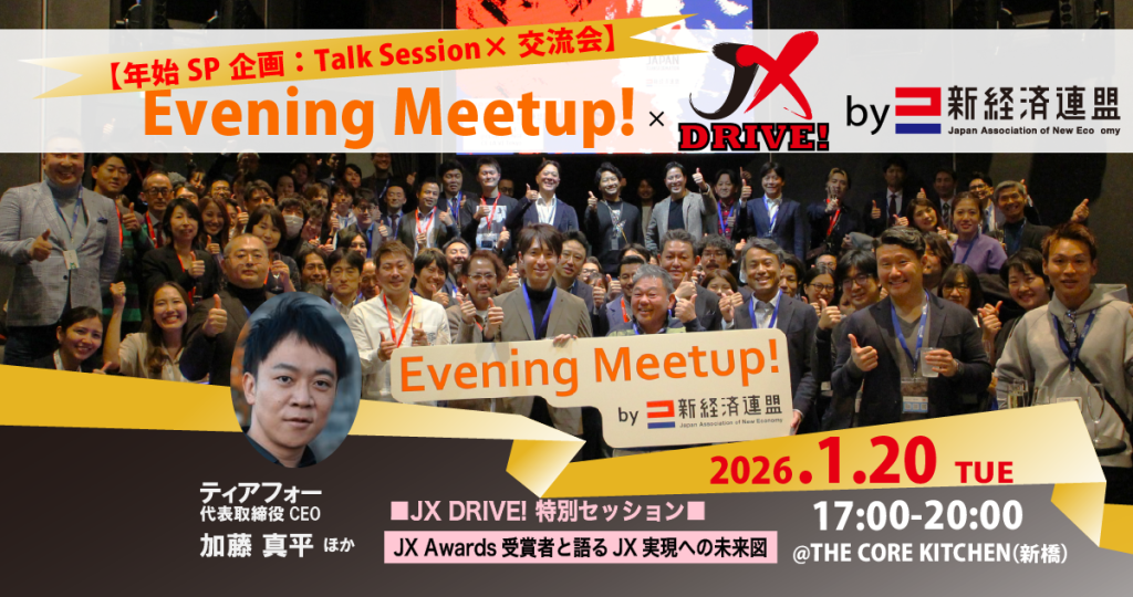 【年始SP企画:Talk Session×交流会】~JX DRIVE!「JX Awards受賞者と語るJX実現への未来図」×恒例のEvening Meetup!~
