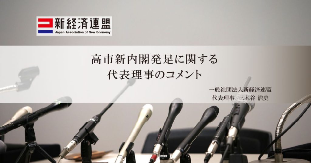 一般社団法人 新経済連盟(所在地:東京都港区、代表理事:三木谷浩史、以下「新経連」)は、高市新内閣発足にあたって、下記の通り代表理事コメントを発表します。