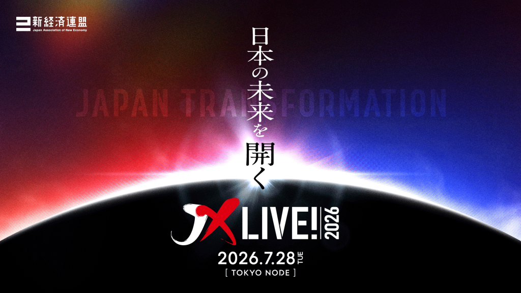 新経済連盟は、2026年7月28日(火)、虎ノ門ヒルズ「TOKYO NODE」にて、周年イベント「JX Live! 2026」を開催します。
