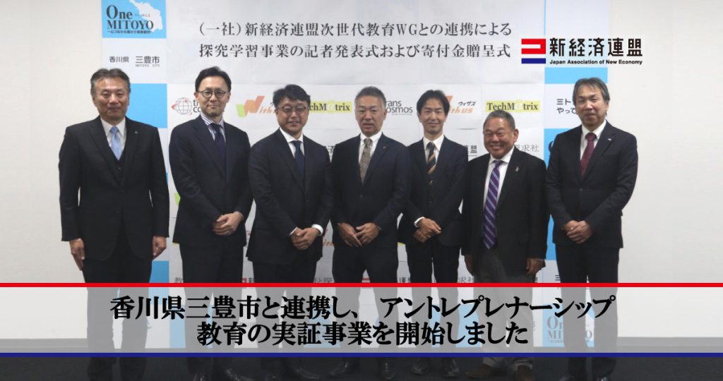 一般社団法人新経済連盟(以下「新経連」)次世代教育ワーキンググループ(以下「本WG」)は、香川県三豊市と連携し、2025年9月より市内の中学校において、アントレプレナーシップ教育の実証事業(以下「本事業」)を開始しました。