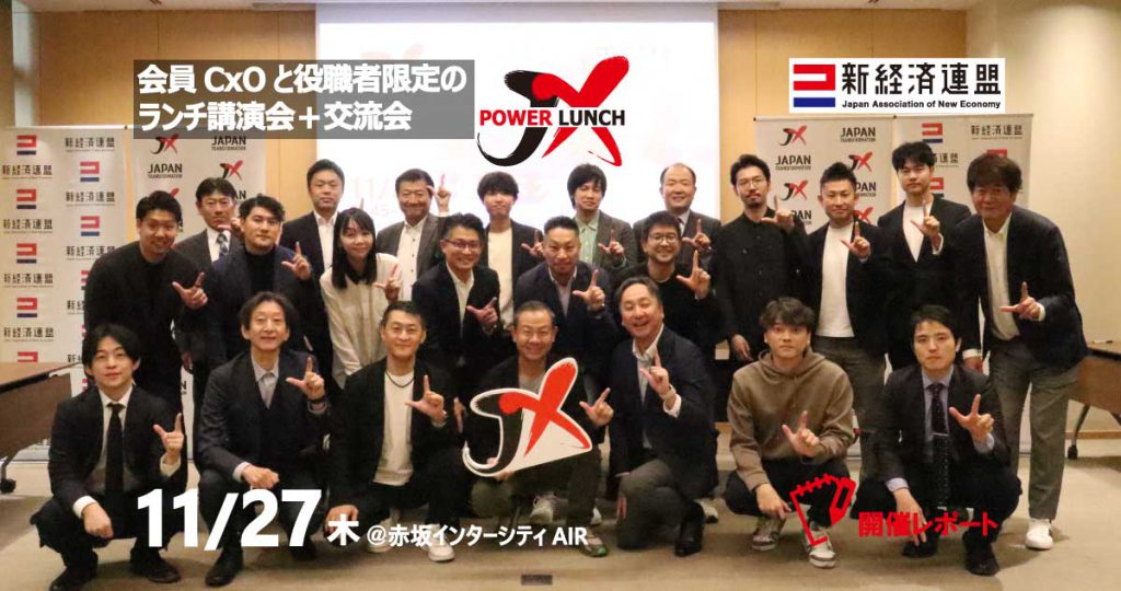 2025年11月27日、一般社団法人新経済連盟は、【JX POWER LUNCH】(会員企業役職者限定 ランチ講演会+交流会)の第二回目を、フリー株式会社CEOの佐々木大輔氏(新経済連盟 幹事)をお招きし、「60万社のプラットフォームのつくり方」をテーマに、赤坂インターシティコンファレンスにて開催致しました。佐々木氏が自社以外のイベントで講演されるのは5年ぶりとのことで参加者の期待も高まります。