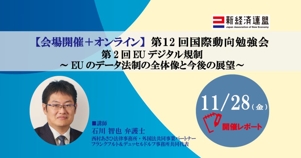 新経済連盟は今後も、海外の法律・規制動向に関するホットトピックを取り上げ、国際動向勉強会を開催していきます。