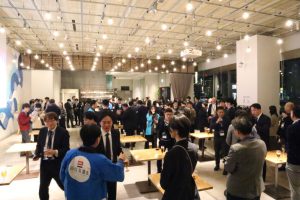 当日は冬の厳しい寒風が吹く夜となりましたが、会場はガラス張りの開放感あふれる空間。路面店ということもあり、帰宅途中のビジネスパーソンが思わず足を止めるほどの熱気に包まれ、全国から約80名の皆さまにお集まりいただきました。