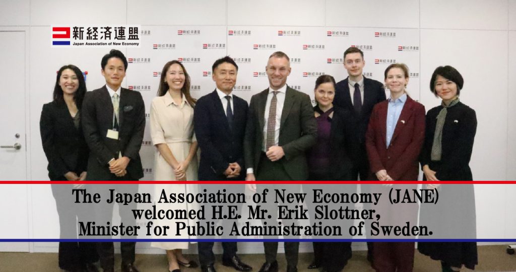 - The Japan Association of New Economy (JANE) welcomed H.E. Mr. Erik Slottner, Minister for Public Administration of Sweden.