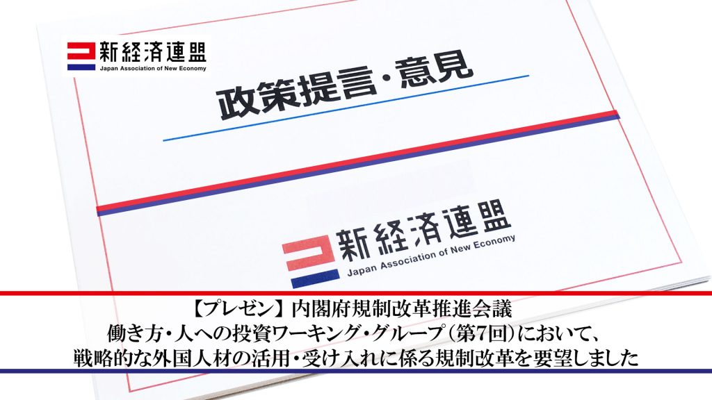 一般社団法人 新経済連盟は2026年4月7日、内閣府規制改革推進会議 働き方・人への投資ワーキング・グループ(第7回)において、戦略的な外国人材の活用・受け入れに係る規制改革要望について説明しました。